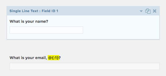 Las etiquetas de combinación en vivo admiten un modificador especial :fallbackque se puede utilizar para mostrar contenido cuando la etiqueta de combinación no tiene un valor. Por ejemplo, si el usuario puede proporcionar opcionalmente su nombre, pero desea saludarlo independientemente, puede usar Hello @{Name:1.3:fallback[there]}. Si un usuario ingresaba su nombre como David, se leería, Hello David, pero si el usuario no ingresaba ningún nombre, se leería Hello there.