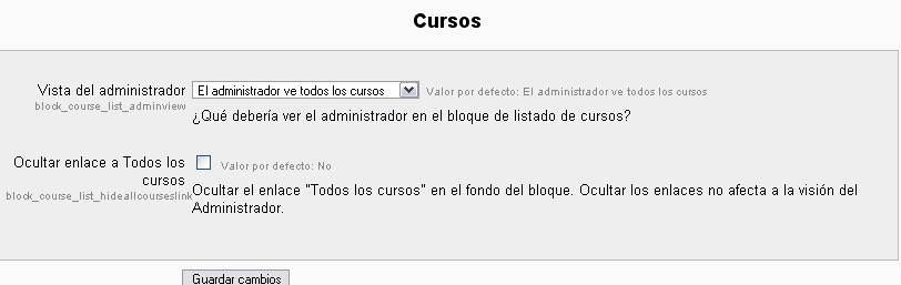 Ubicación: Administración> Módulos > Bloques> Cursos