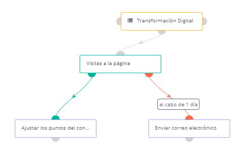 Estas dos opciones son demostradas por los puntos de decisión verde y rojo en la decisión. Cada camino puede ser gestionado por su campaña. Este proceso se conoce normalmente como un árbol de decisión.