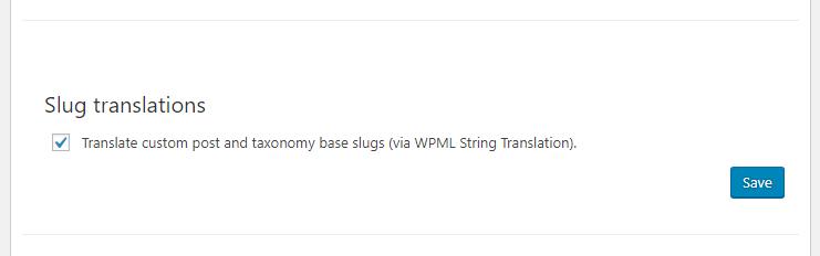 Luego dirigirse a WPML > Página de Ajustes. Encontrará la nueva sección para localizar slugs.