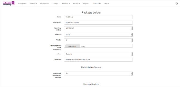 En el siguiente ejemplo, implementamos un software mediante la instalación silenciosa de Windows Installer. Nuestro archivo ZIP solo incluye el archivo “software.msi” y el campo “Comando” contiene:
