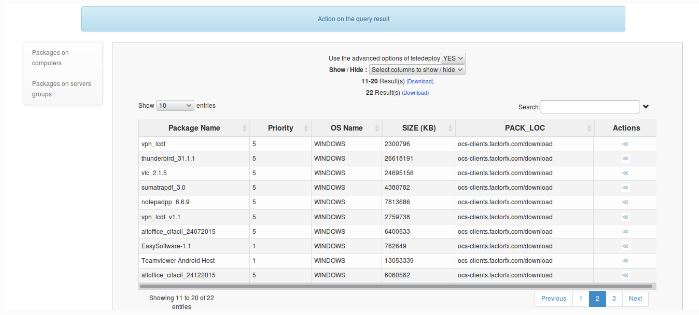 La mejor manera es utilizar la función de búsqueda con varias funciones de criterio para buscar las computadoras que desee y afectar el paquete a todas estas computadoras al mismo tiempo.