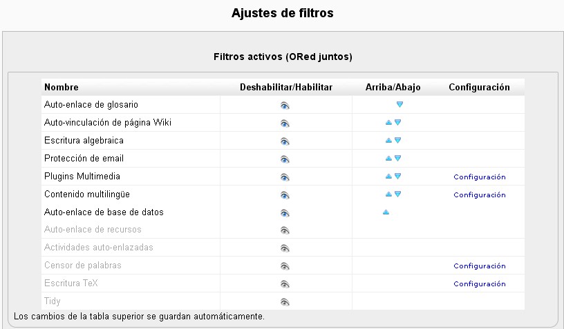 Ubicación: Administración> Módulos > Filtros> Ajuste de Usuarios