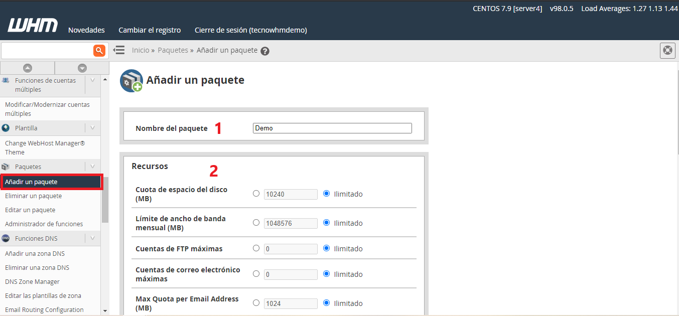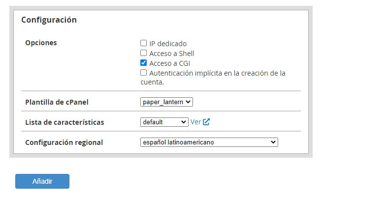 - La interfaz de cPanel solo muestra el nombre del paquete (por ejemplo,