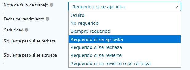 - Requerido si se revierte o rechaza: vuelve obligatorio el campo de notas si se realiza la acción de revertir o rechazar.