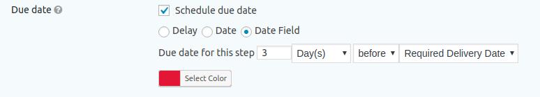 Los pasos Aprobación y Entrada del usuario se pueden configurar para tener una fecha de vencimiento después de un retraso específico o en una fecha específica.