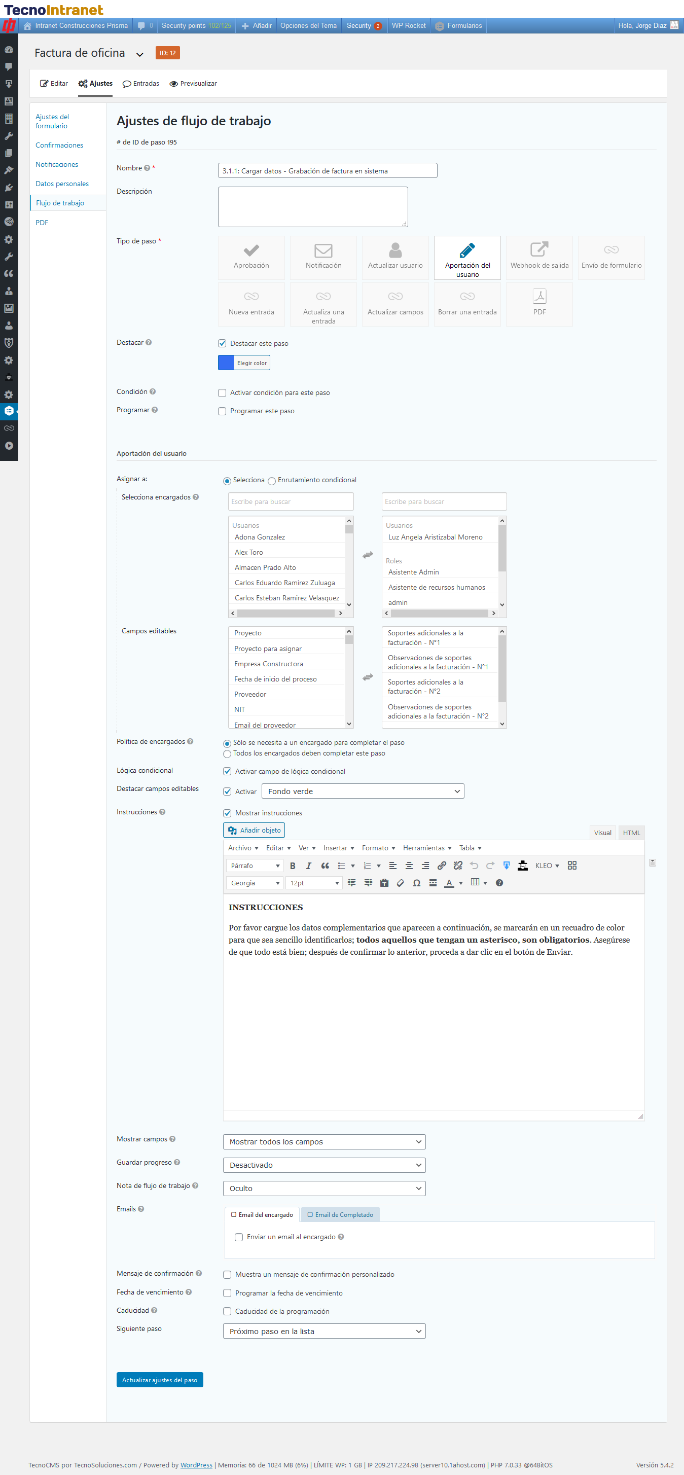 Podemos mostrar los campos ocultos en el formulario en la sección de campos editables. Esto nos permite agregar contenido extra a la entrada durante el recorrido del flujo de trabajo, estos campos pueden estar ligados a otros departamentos que participan dentro del flujo o a otros cargos del mismo departamento.