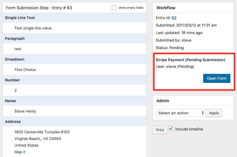 Cuando un flujo de trabajo se encuentra en un paso de envío de formulario, el cesionario o los cesionarios pueden abrir el formulario desde la página de detalles de entrada del flujo de trabajo de esta manera: