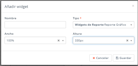 Cada gráfico de cada informe está disponible como un widget en el panel de control que permite la personalización completa del tablero.