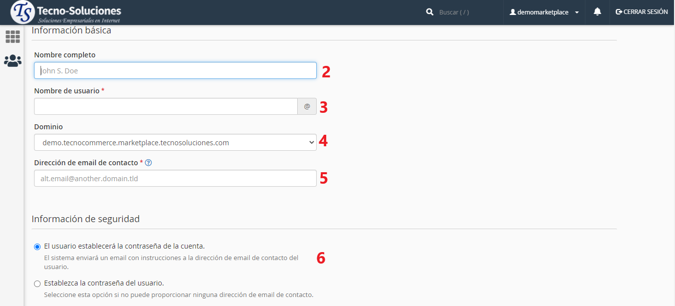 Ingrese una dirección de correo electrónico de contacto para el usuario.