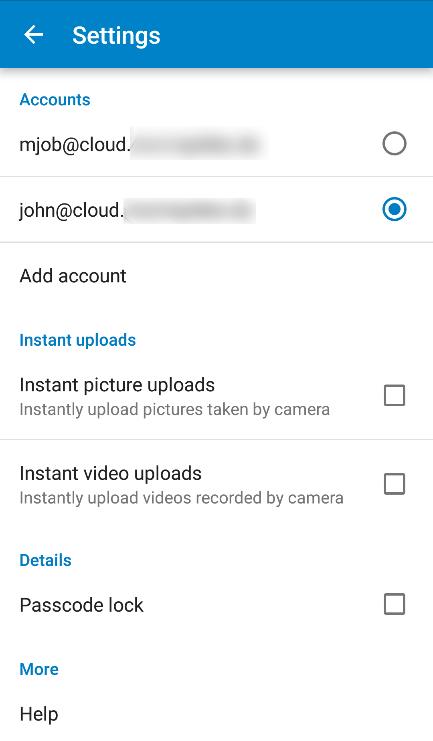En la sección Cuentas puede configurar y administrar varias cuentas.