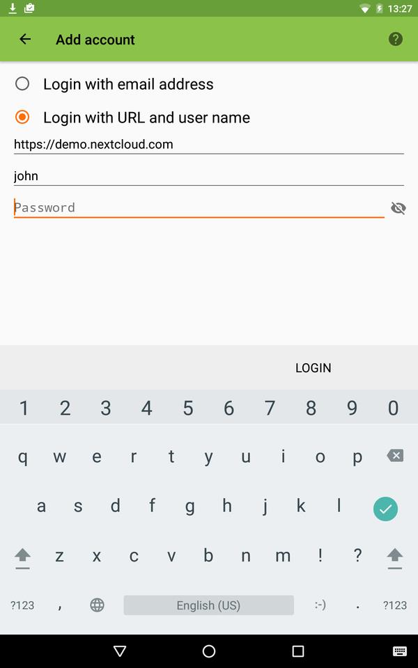 Al hacer clic en la entrada del menú “Sincronizar calendario y contactos” y la aplicación DAVDroid está instalada, se abrirá la configuración de la aplicación DAVDroid precargada con la información de la cuenta de la aplicación TecnoCloud. Solo necesita especificar la contraseña.