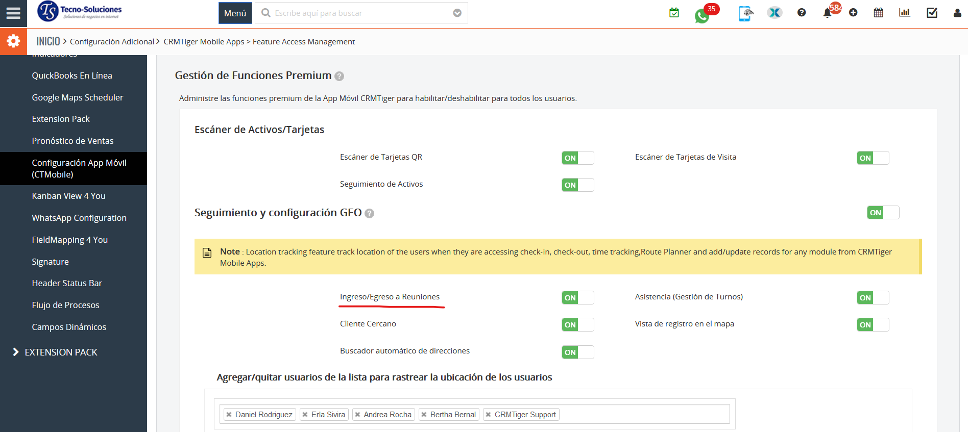 Se puede acceder a la configuración de administración de funciones premium desde la siguiente ruta.