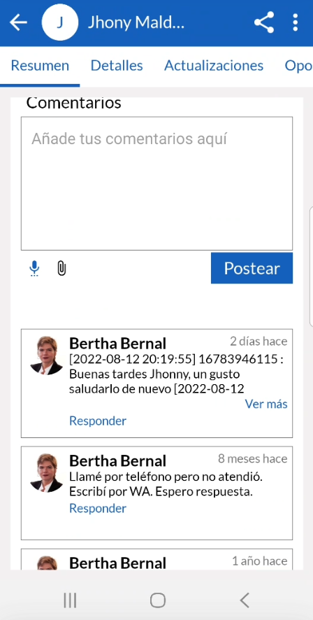 - Se puede acceder a la función de comentarios dentro del resumen del registro individual.