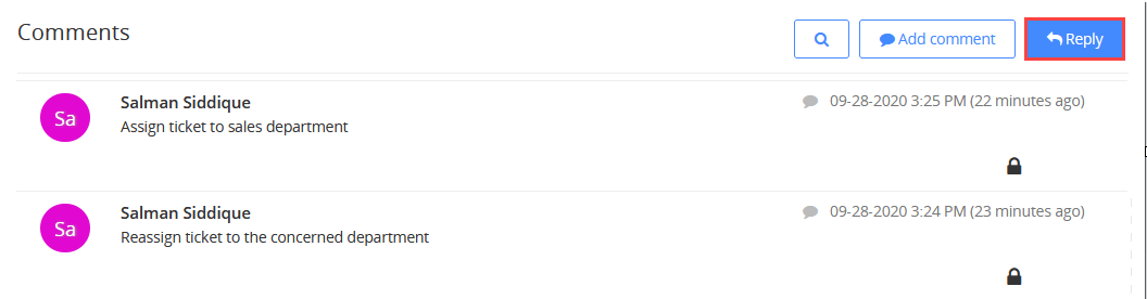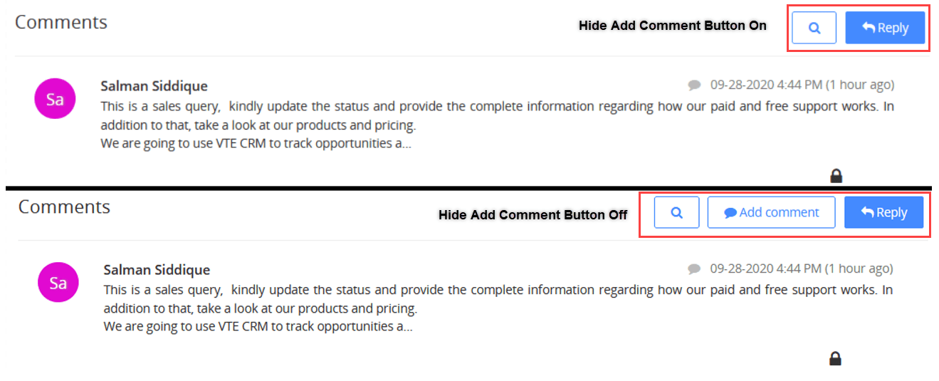 - Activar botón en comentario: Si un usuario ha agregado botones personalizados en el módulo de ticket. Luego, al usar esta opción, pueden activar el botón personalizado cada vez que se presiona el botón de comentario. Esta función es exclusiva de las entradas.