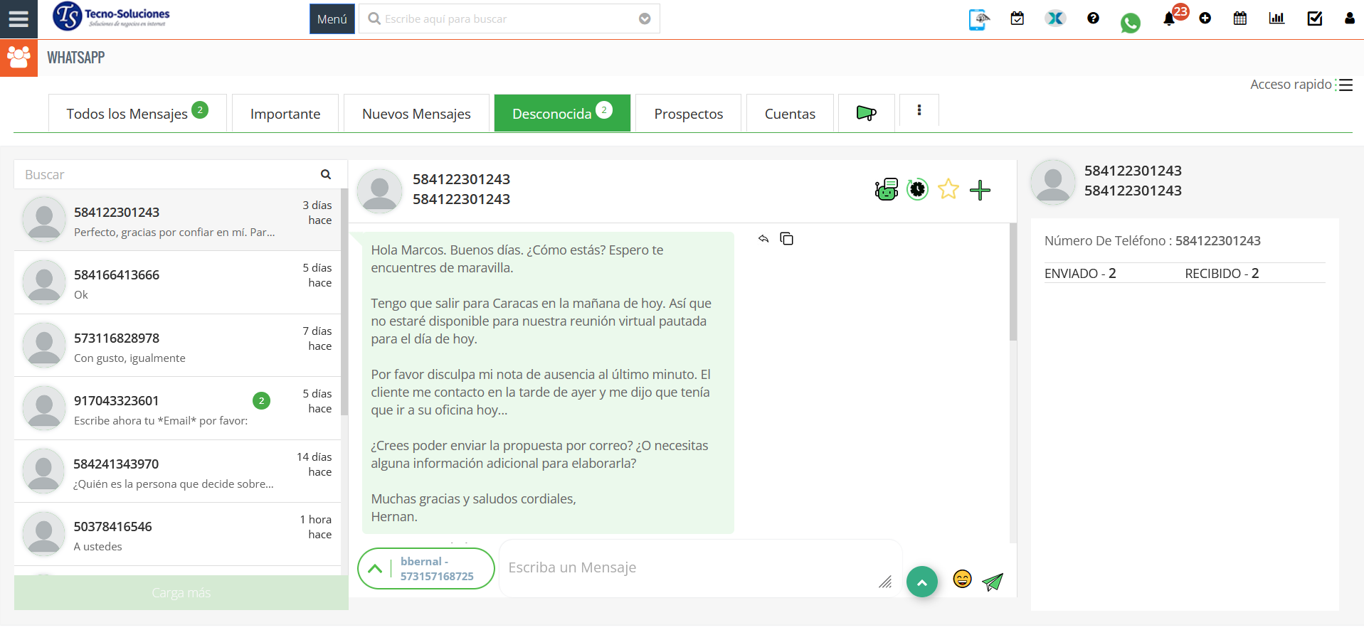 - Mensaje de número desconocido