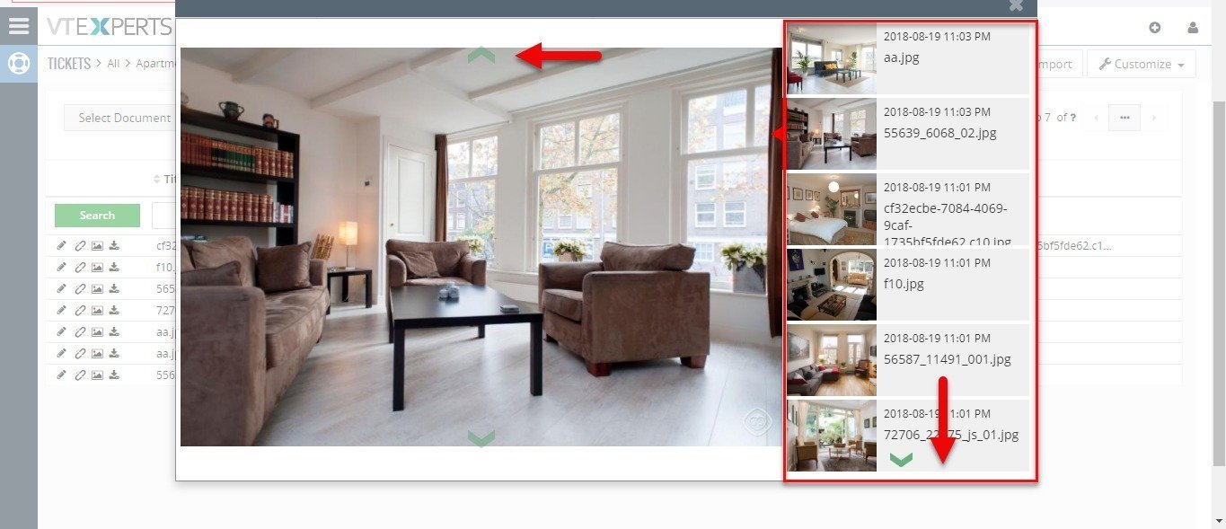 Es simplemente un complemento que permite obtener una vista previa de cualquier documento (imágenes/fotos) adjunto al registro de TecnoCRM. La presentación de diapositivas enumera las miniaturas (archivos) a la derecha con la fecha de creación y el título del documento con la capacidad de desplazarse por todos ellos en solo unos segundos.