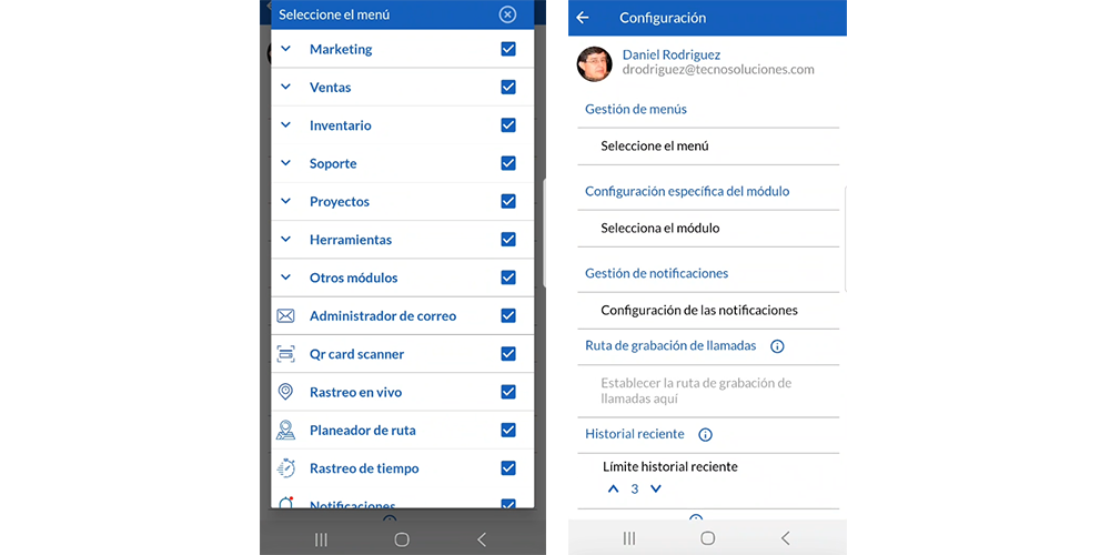 Se puede acceder a la configuración de administración del menú mediante la siguiente ruta dentro de la aplicación móvil.