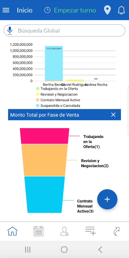 - Widget de página de inicio predeterminado: En TecnoCRM hay una opción en el panel llamada Agregar widget, gráfico u opción que se muestra en Agregar widget se agregará al panel de aplicaciones móviles.