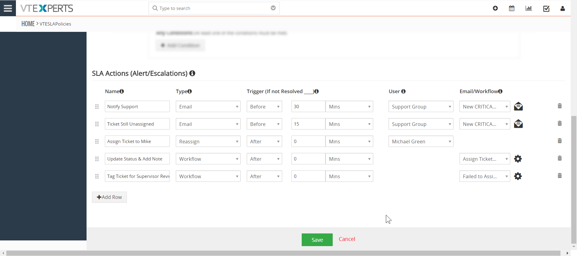 La extensión de la política de SLA para TecnoCRM se diseñó para mejorar los tiempos de respuesta y la responsabilidad cuando se trata de asuntos urgentes. Se usa principalmente en el departamento de soporte/servicio de ayuda, donde cada ticket/caso debe asignarse y trabajarse/resolverse en una fecha y hora determinadas. Permite al administrador crear reglas de política de SLA personalizadas, que luego se aplican automáticamente a un registro. Por ejemplo, si se crea un nuevo crítico y un usuario no lo reclama/asigna, se puede configurar una política para notificar a los usuarios disponibles cada 10 minutos desde que se creó el ticket. Además, puede notificar al supervisor por correo electrónico o mensaje de texto (flujo de trabajo) 20… 30… 40… minutos después si aún no se ha trabajado en el ticket.